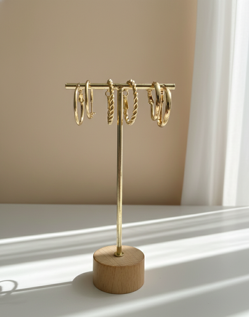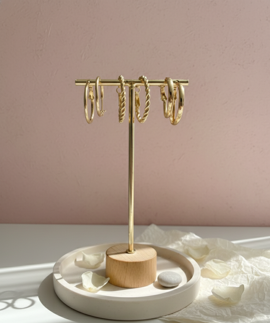 Add a touch of effortless sophistication to your jewellery collection. The Essential Hoop Anthology Set blends classic silhouettes with a modern, aesthetic finish perfect for creating a signature daily look, transitioning to evening glamour, or adding a "polished" glow to your modern wardrobe.