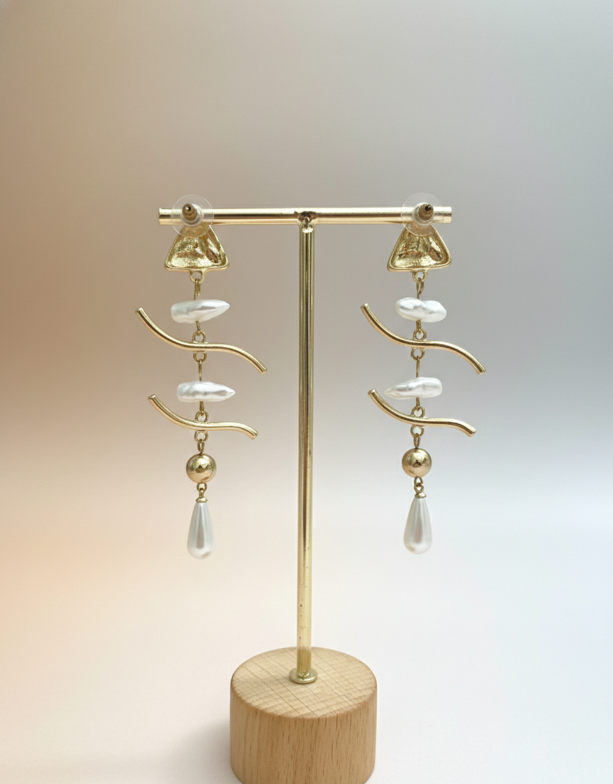 Add a touch of sculptural elegance to your everyday look. These Muse Pearl Drops blend effortless movement with a sophisticated, aesthetic finish perfect for gallery openings, rooftop brunches, or adding an "aspirational" glow to your modern wardrobe.